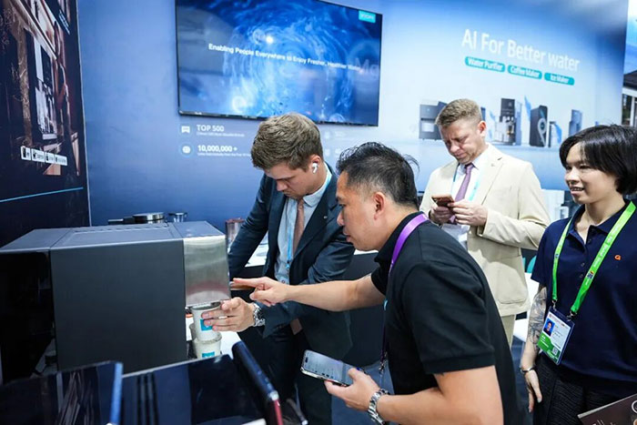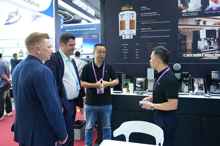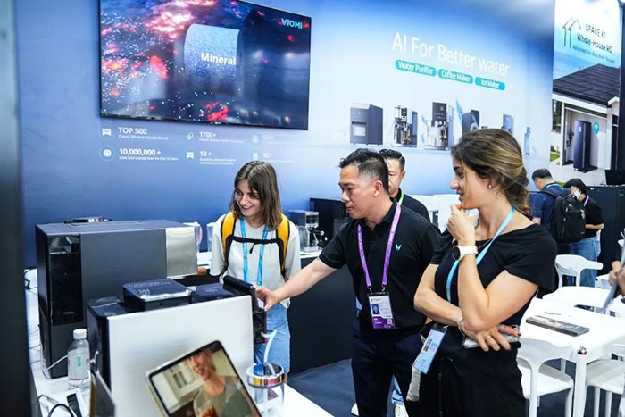 4月15日,第139届广交会在广州琶洲国际会展中心开幕。VIOMI携净水器、咖啡机、制冰机三大产品线登陆家电展区,现场沉浸式体验,吸引全球采购商驻足咨询。