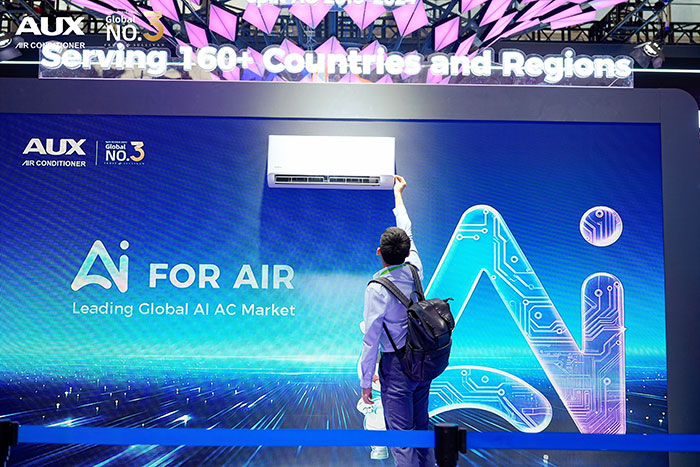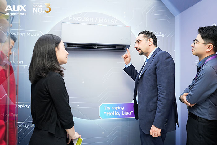 现场,全系列AI智能产品与面向全球不同国家的AI解决方案获得全球客商高度认可,并对AI人感、AI多语言语音交互等创新功能表示浓厚兴趣。从产品出海、品牌落地再到AI智能战略领航,目前奥克斯空调深入全球160多个国家和地区,在马来西亚、泰国、美国等10国设立销售公司。