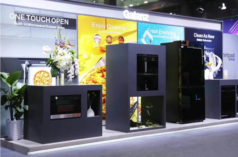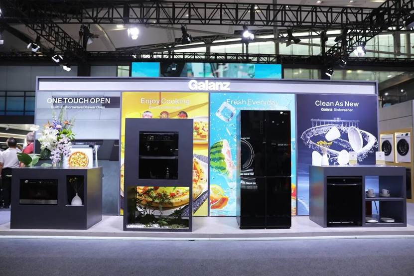 作为广东省厨卫电器重点产业链的“链主”企业,格兰仕在展区核心位置构建起一个集烹饪、储藏、清洁于一体的现代厨房全场景。从微蒸烤炸一体机到冰箱、洗碗机,全套产品采用统一的设计语言,在功能上一站式满足现代家庭的多元需求,在美学上实现高度协调。