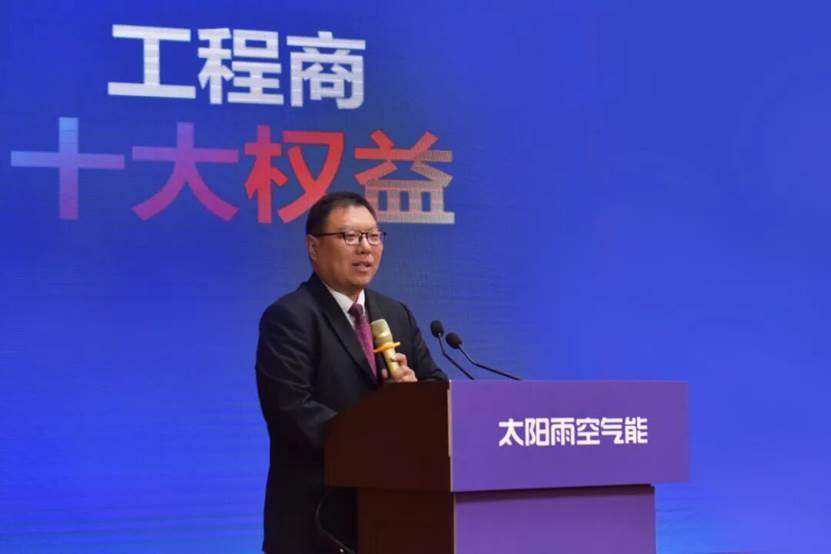 太阳雨集团副总裁、总工程师 李开春作《太阳雨清洁能源之道》分享,全面介绍了公司清洁能源高精尖技术布局,围绕零售原装集成、工程综合能源两大板块,为合作伙伴清晰规划经营方向与发展路径。