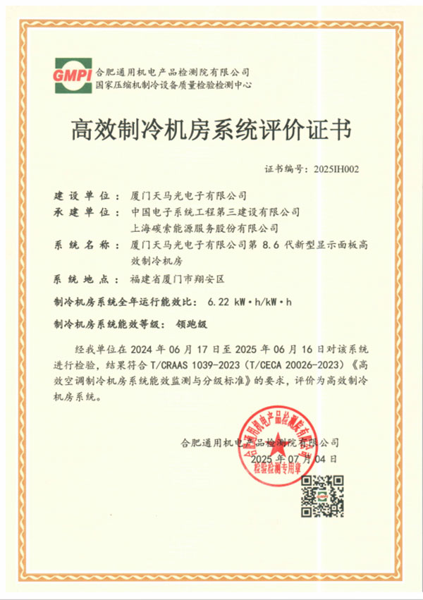 EER 6.22究竟是什么水平?通俗来说,目前行业常规制冷机房的EER大约在4.1,优秀水平也仅在5.0左右,而厦门天马项目做到了6.22,属于行业领跑级能效,节能幅度远超普通机房。简单说,就是同样的耗电量,能多吹出近一半的冷气。