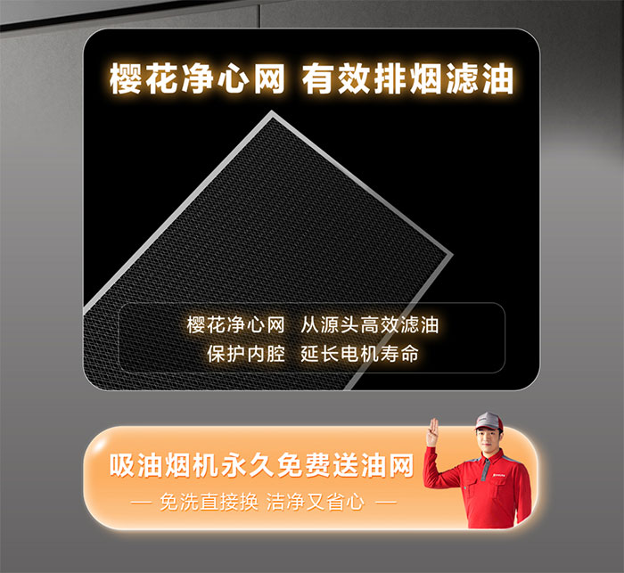SAKURA樱花“吸油烟机永久免费送油网”,以贴心而持久的关怀,让厨房回归清爽,也让日常生活更从容。